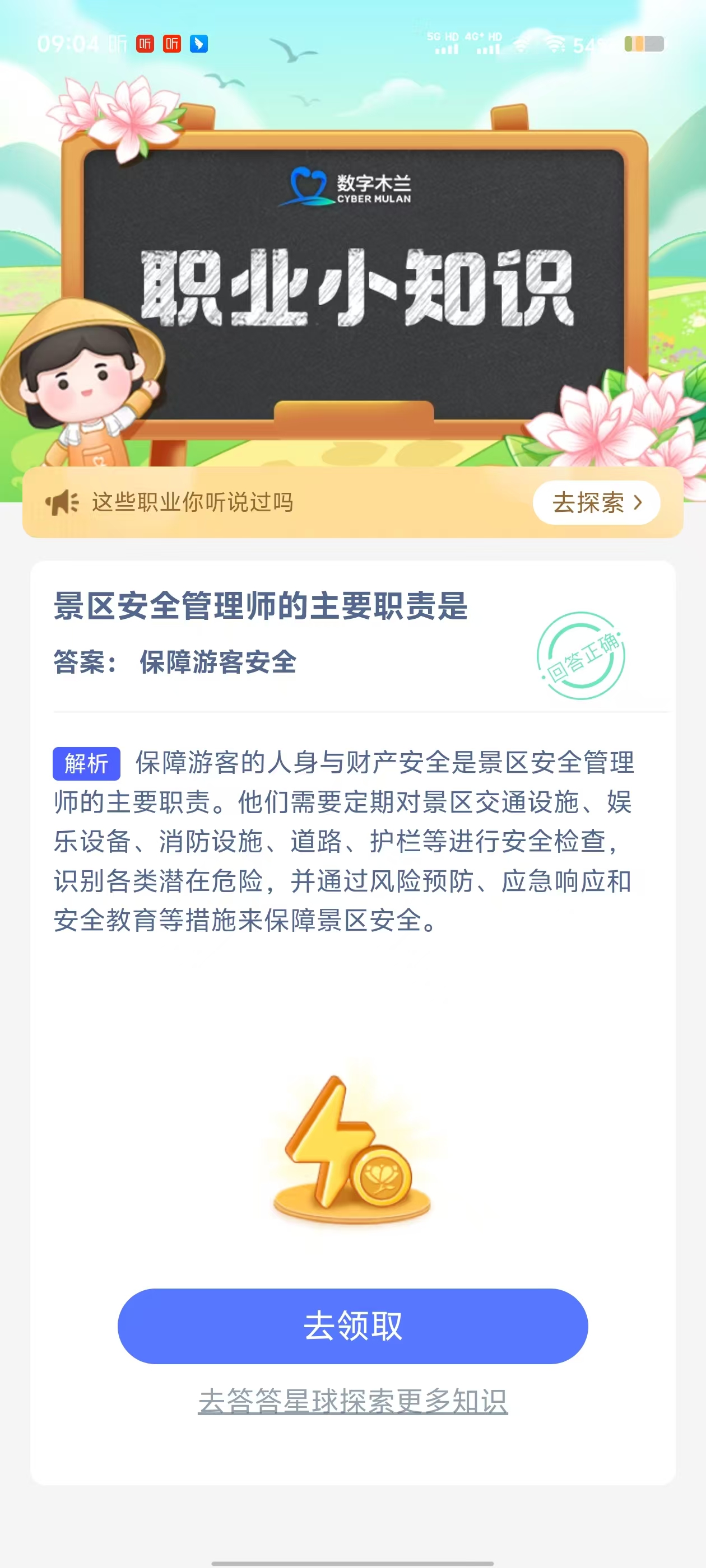 2、在【职业小知识问答】对话框中,点击【去完成】进入答题页面;
