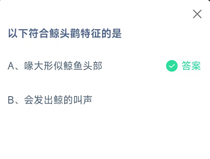 相比之下,选项B“当然是”并没有准确描述鲸头鹳的特征,缺乏具体性,因此不符合题意。