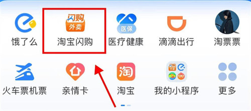 打开支付宝→在主菜单上面,即有“淘宝闪购”的图标,如图所示: