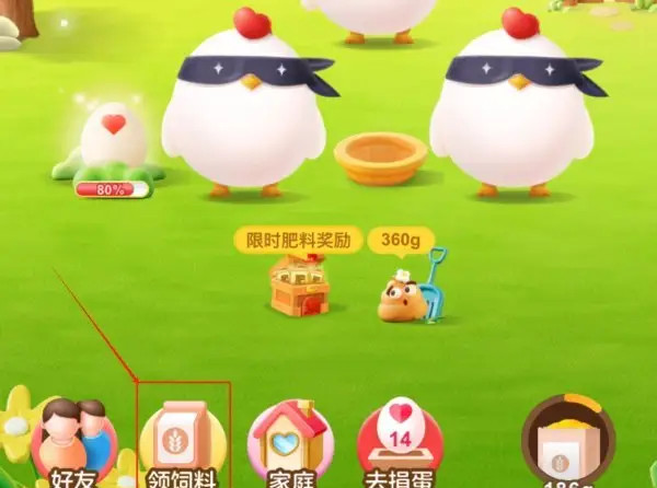 步骤二:点击页面底部的“领饲料”,这里是每天获取饲料的主要入口。