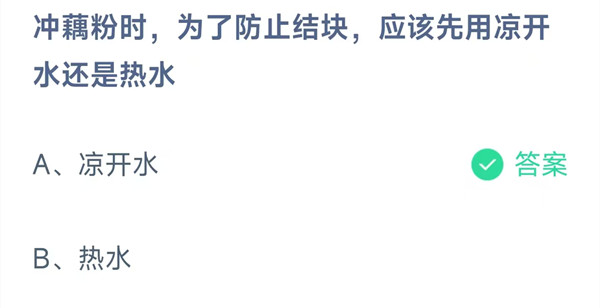 冲藕粉时,为了防止结块,应该先用凉开水还是热水?这是今天《支付宝》每日一题的问题,相信我们很多用户都很想知道这个问题的答案是什么?这么一个可以领取饲料的机会相信我们很多用户都不想错过,这里指玩手游网的小编为你带来了2025《支付宝》11月29日每日一题最新答案介绍(2)的全部内容,喜欢的小伙伴欢迎点击进入看看吧。