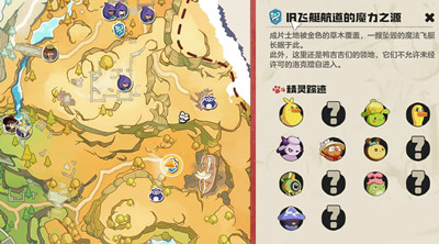 前往该区域的魔力源后,沿小道前行可见多只铃兰羊及其初始形态锥尾羊。同时,从魔力源后方攀上船骸上坡,也能发现一群铃兰羊家族成员,捕捉选择丰富。