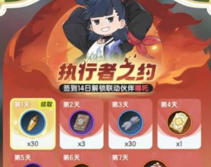 累计签到14天后,可免费获得联动角色 哪咤。