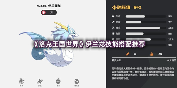 伊兰龙是《洛克王国世界》中一只高魔攻输出的龙系精灵,魔攻资质高达168,在同类中实力出众,适合用作主力输出培养,那么它的众多技能该如何选择搭配呢?现在就让指玩手游网的小编为大家带来关于《洛克王国世界》伊兰龙技能搭配推荐的全部内容吧,感兴趣的小伙伴一定不要错过哦。