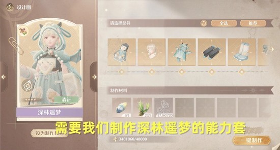 制作完成后,再次与伊恩对话,选择 “关于深林遥梦套装”