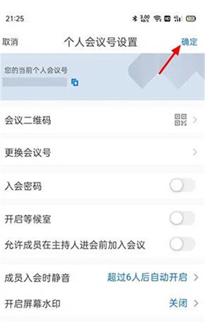 设置完成后,点击右上角确定,然后点击进入开始会议。