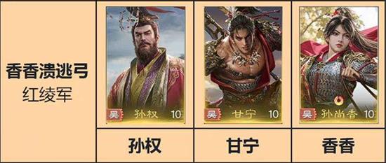 若未抽到孙权,可用黄盖替代,阵容偏盾兵。黄盖对敌方伤害系数高达400,是实用输出替代。