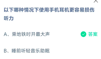 以下哪种情况下使用手机耳机更容易损伤听力?这是今天《支付宝》每日一题的问题,相信我们很多用户都很想知道这个问题的答案是什么?这么一个可以领取饲料的机会相信我们很多用户都不想错过,这里指玩手游网的小编为你带来了2025《支付宝》12月10日每日一题最新答案介绍(2)的全部内容,喜欢的小伙伴欢迎点击进入看看吧。