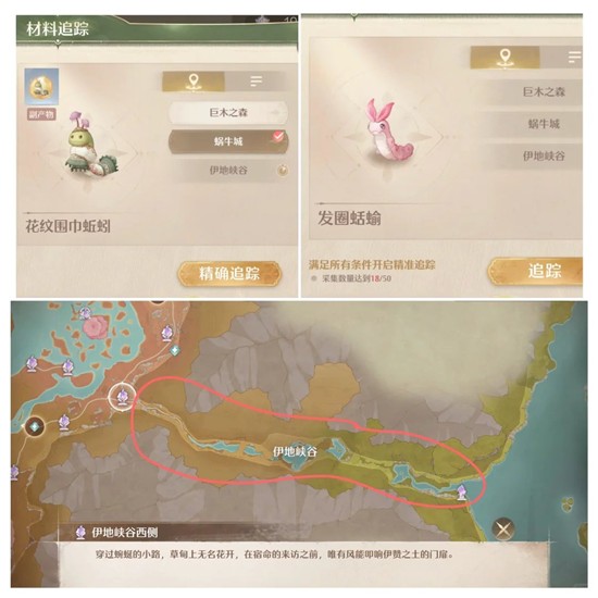 如果还没解锁相关区域,记得先到伊地峡谷,采集时留意蚯蚓的洞口和蛞蝓的颜色,它们会让你轻松补充商店库存!