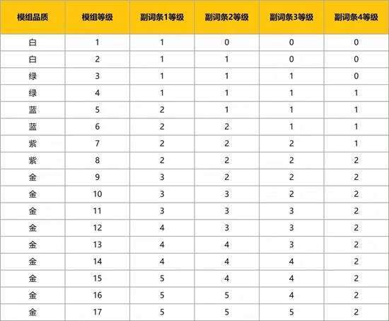 固定副词条:每颗新模组自带四条固定副属性,与主词条完全匹配。
