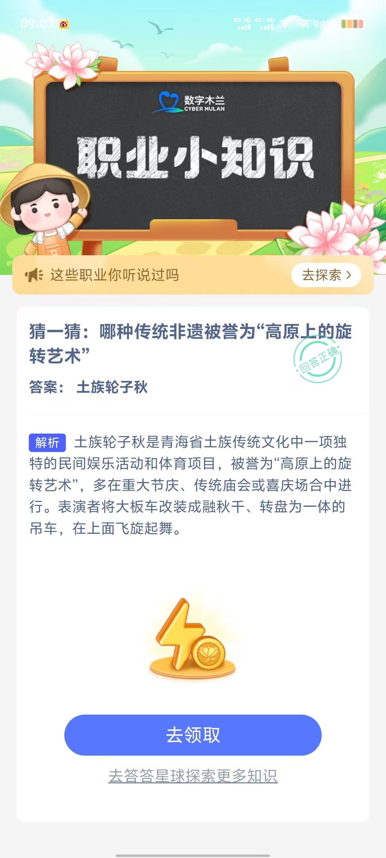 3、选择正确答案,答对可得“产速+3/时”,答错也有“产速+1/时”,奖励有效期为24小时;