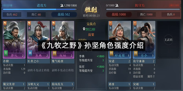 以上就是指玩手游网小编为你带来的《九牧之野》孙坚角色强度介绍的全部内容,更多精彩游戏资讯攻略尽在指玩手游网,感兴趣的小伙伴欢迎点击关注收藏本网站哦。