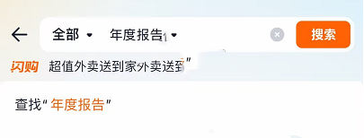 1、进入 淘宝闪购 页面,搜索 “年度报告”。