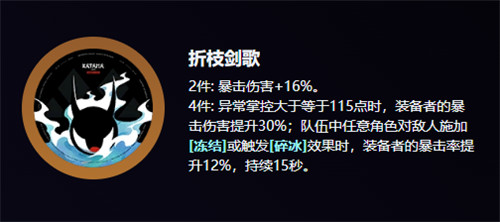 4件效果:异常掌控≥115时,暴伤额外提升30%;队伍中任一角色触发冻结/碎冰效果时,自身暴击率提升12%,持续15秒。