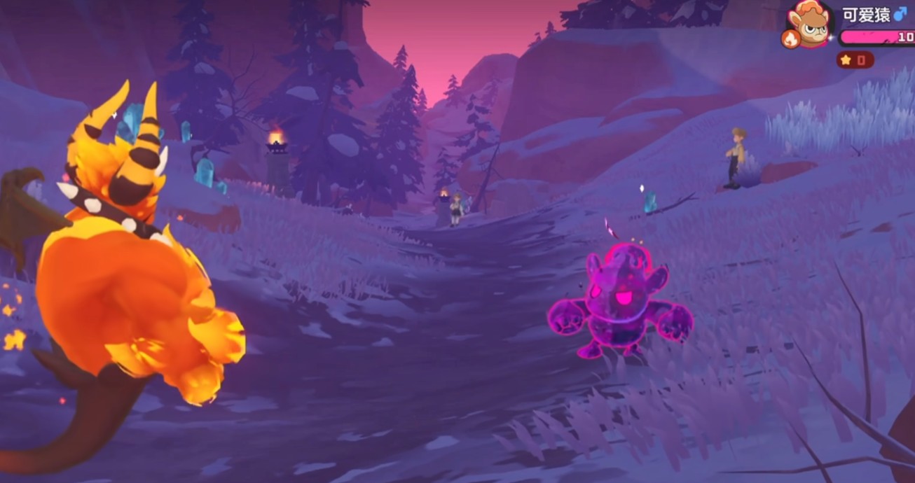 可爱猿通体紫色,略带透明,看到后直接攻击即可。如果玩家等级较高,且拥有高级精灵球,也可以直接投掷捕捉。
