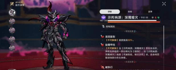 3、带「阮梅」时不要开启其终结技。战斗开始,Boss在第一次行动的二动获得【基因复制】,召唤4只「幼蛰虫」,并拉一名角色及其忆灵,拉条角色获得【天敌】buff(只有带【天敌】的角色能暴击)。