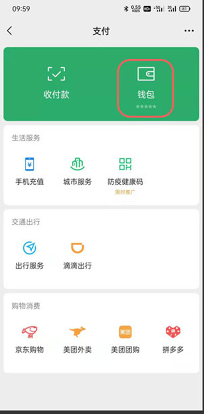 2、在支付页面点击【钱包】,然后在钱包页面最下方选择【安全保障】。