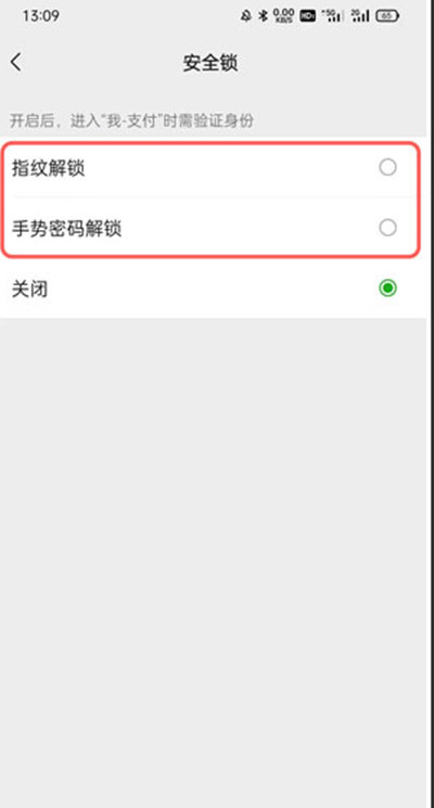 4、选择安全锁类型(如手势密码),输入支付密码进行身份认证。