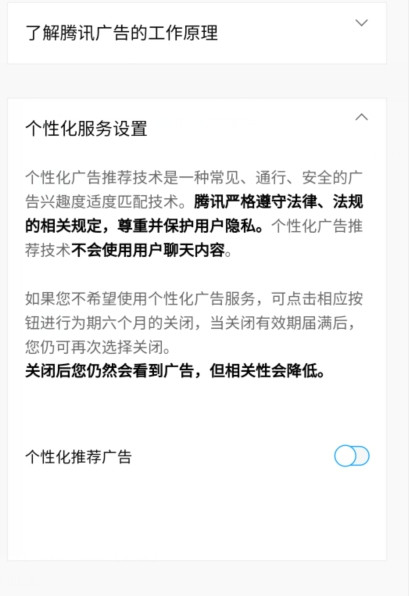 8、在管理界面关闭【个性化推荐广告】开关即可。