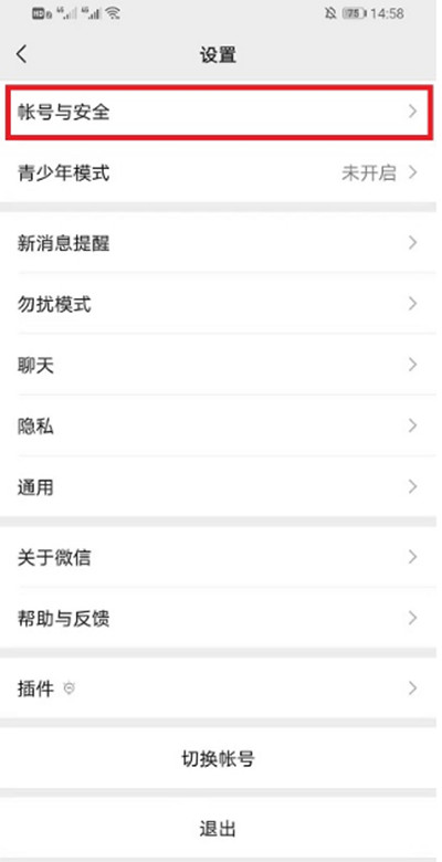 3、在设置界面中,找到【账号与安全】选项,点击进入。