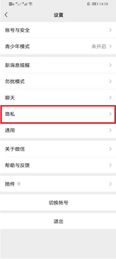 3、在设置页面中,找到【隐私】选项,点击进入隐私设置页面。