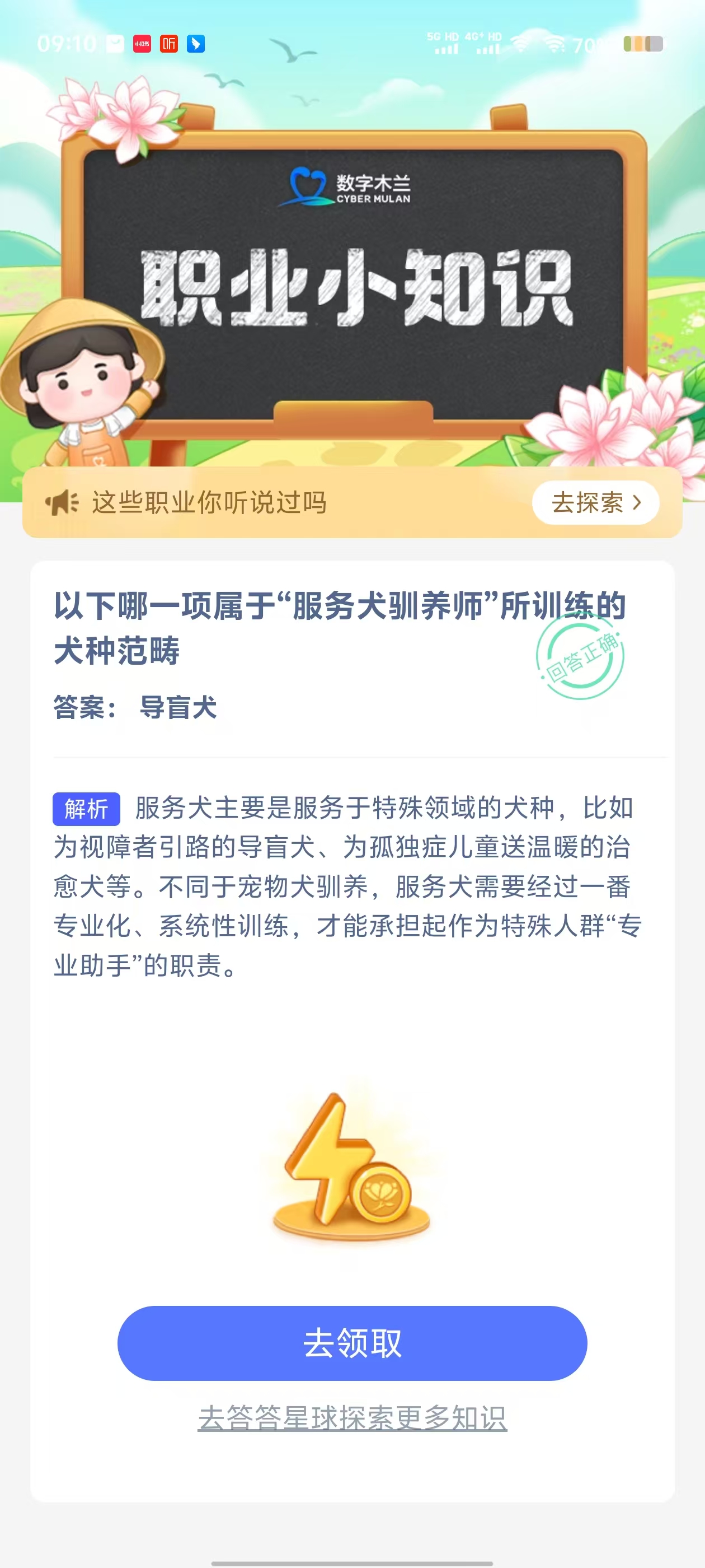 2、在【职业小知识问答】对话框中,点击【去完成】进入答题页面;