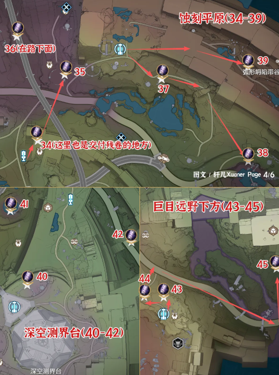 ① 地图截图已标注所有终声残卷位置,图标下方箭头所指即为具体点位。