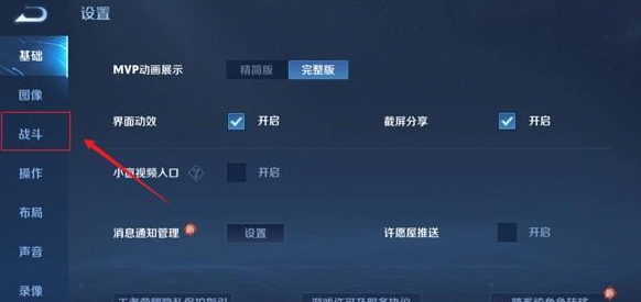 2、选择左侧的战斗选项。