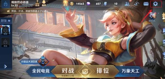 1、进入游戏主界面,点击右上角设置按钮。