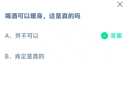 喝酒可以暖身,这是真的吗?这是今天《支付宝》每日一题的问题,相信我们很多用户都很想知道这个问题的答案是什么?这么一个可以领取饲料的机会相信我们很多用户都不想错过,这里指玩手游网的小编为你带来了2025《支付宝》12月31日每日一题最新答案介绍(1)的全部内容,喜欢的小伙伴欢迎点击进入看看吧。