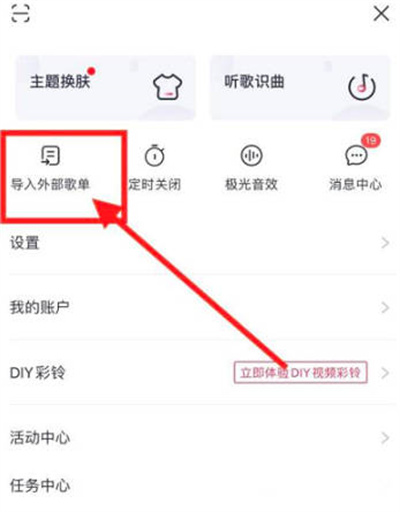 2、进入菜单后,点击“导入外部歌单”。