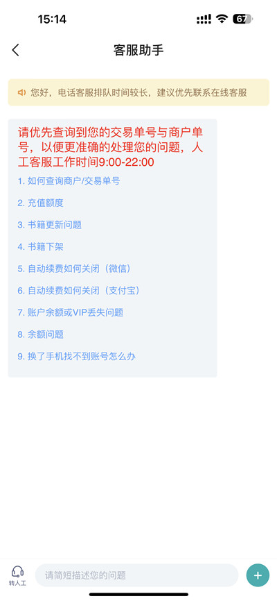 3、进入人工客服页面点击左侧的“转人工”按钮,