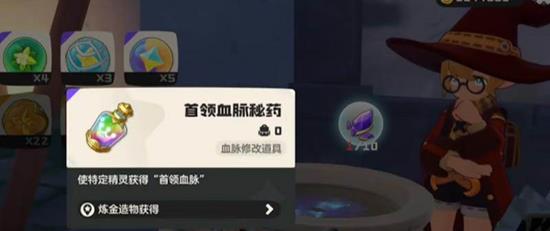 解锁配方后,可在炼金台查看。在精灵球分类列表最后会出现“首领血脉秘药”配方。