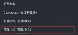 3、从列表中选择“简体中文(简体中文)”,确认后重启App即可生效。