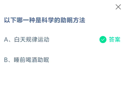 A、白天规律运动B、睡前喝酒助眠
