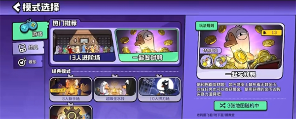 地图上涌现大量金币,完成任务赚赏金买道具,鹅鸭一起“搞钱”赢胜利。