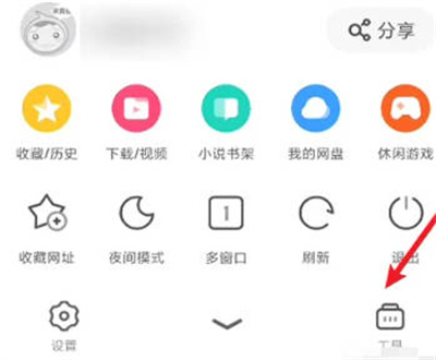 1、打开UC浏览器,点击底部菜单。