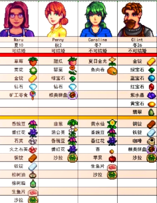 以上就是指玩手游网小编为你带来的《星露谷物语》人物喜好介绍的全部内容,更多精彩游戏资讯攻略尽在指玩手游网,感兴趣的小伙伴欢迎点击关注收藏本网站哦。