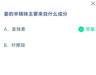 姜的辛辣味主要来自什么成分?这是今天《支付宝》每日一题的问题,相信我们很多用户都很想知道这个问题的答案是什么?这么一个可以领取饲料的机会相信我们很多用户都不想错过,这里指玩手游网的小编为你带来了2026《支付宝》1月10日每日一题最新答案介绍(2)的全部内容,喜欢的小伙伴欢迎点击进入看看吧。