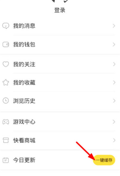 3、进入我的页面后,找到“今日更新”,点击后面的“一键缓存”即可。