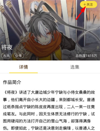 1、打开快看漫画软件,点击想要下载的漫画,点击右上角的“关注作者”。