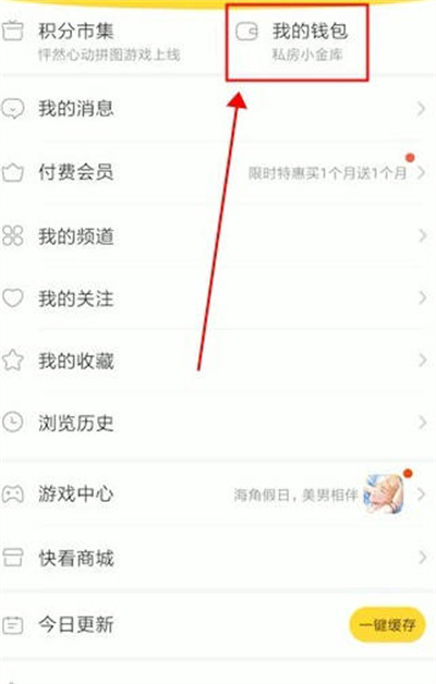 2、进入我的页面后,点击右上角“我的钱包”。