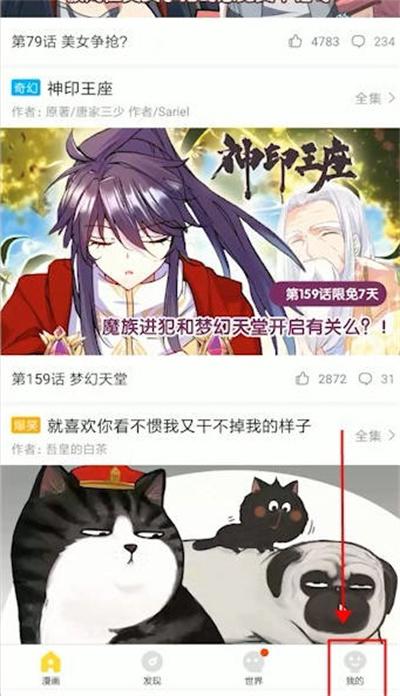 1、我们打开快看漫画软件,点击右下角“我的”。