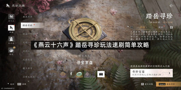 以上就是指玩手游网小编为你带来的《燕云十六声》踏岳寻珍玩法速刷简单攻略的全部内容,更多精彩游戏资讯攻略尽在指玩手游网,感兴趣的小伙伴欢迎点击关注收藏本网站哦。