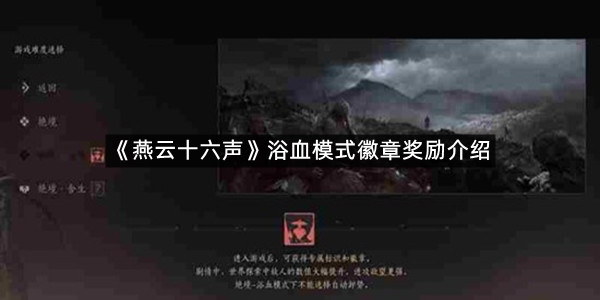 《燕云十六声》是一款高自由度的大世界武侠游戏,玩家们可以在该游戏中开启各种模式进行挑战,其中浴血模式难度很大,但是奖励也非常的丰富,那么浴血难度有什么奖励呢?现在就让指玩手游网的小编为大家带来关于《燕云十六声》浴血模式徽章奖励介绍的全部内容吧,感兴趣的小伙伴一定不要错过哦。