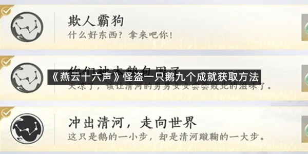 以上就是指玩手游网小编为你带来的《燕云十六声》怪盗一只鹅九个成就获取方法的全部内容,更多精彩游戏资讯攻略尽在指玩手游网,感兴趣的小伙伴欢迎点击关注收藏本网站哦。