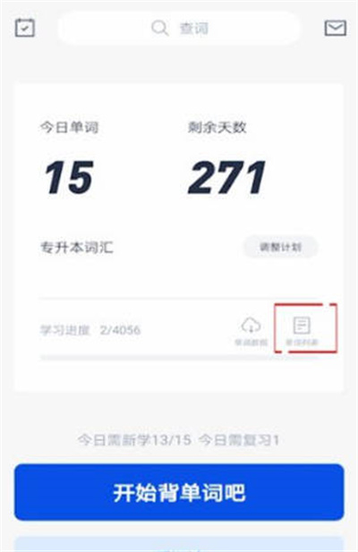 1、打开百词斩软件,进入首页并找到“单词”页面,点击进入单词列表。
