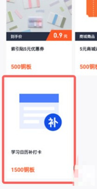 2、在铜板页面,选择“学习日历补打卡”,然后兑换。