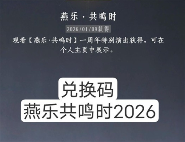 操作:游戏内兑换界面输入 燕乐共鸣时2026 → 确认 → 获得徽章【共鸣时】