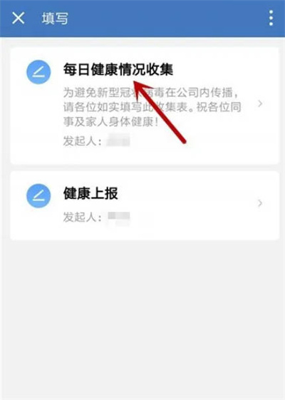 2、进入 健康上报 页面 → 点击 每日健康情况收集 → 填写相关信息。